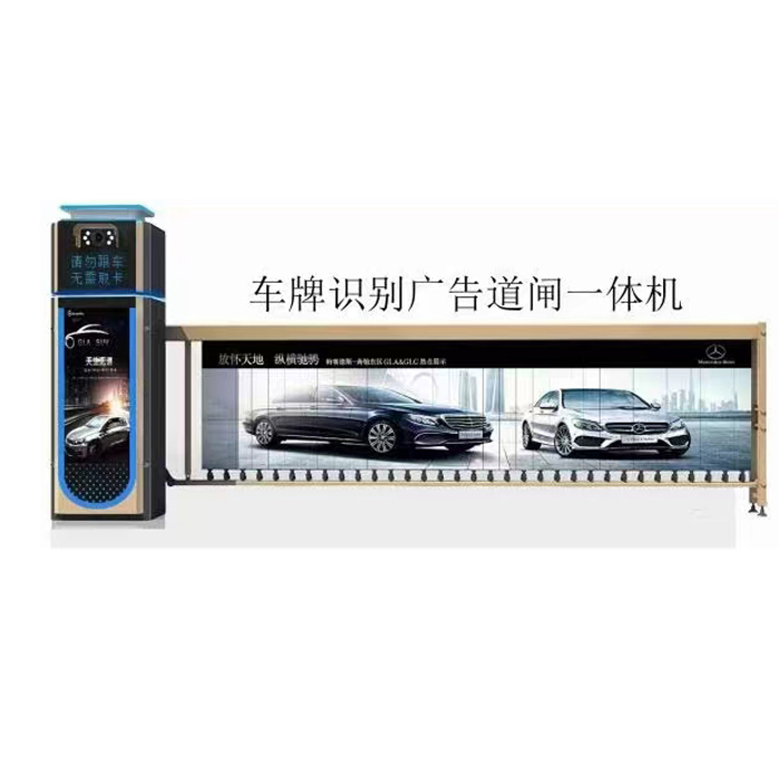 广告闸款车牌识别道闸一体机是专门针对停车场出入口控制推出的一款专用设备,设备集成道闸、车牌识别摄像机、四行四字LED显示屏、语音播报、补光灯、车辆检测器等模块。该产品集车牌识别一体机(控制机)和执行设备(道闸)于一身,一个产品实现两个产品的功能,大大简化施工布线的工作;该产品外观大气、新颖,车牌识别摄像机采用内嵌式三维安装设计,车牌识别相机上、下、左、右各35°C角度可调,车牌识别准确率高;机身采用左右向安装互换性对称设计,方便左右安装。产品采用变频道闸,可应用于商业综合体、交通枢纽、住宅、园区、医院、学校等所有停车场出入口。